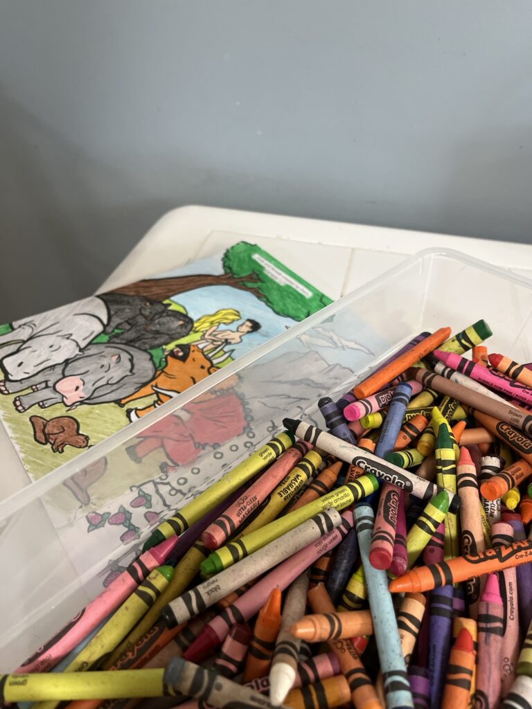 Don’t overcomplicate it. I literally am just coloring with the kids at the table while I let the Bible play nearby. Sometimes we talk over it. Sometimes I pause it if they ask a question. Sometimes we sit in silence and listen together. Sometimes they draw or do a craft.